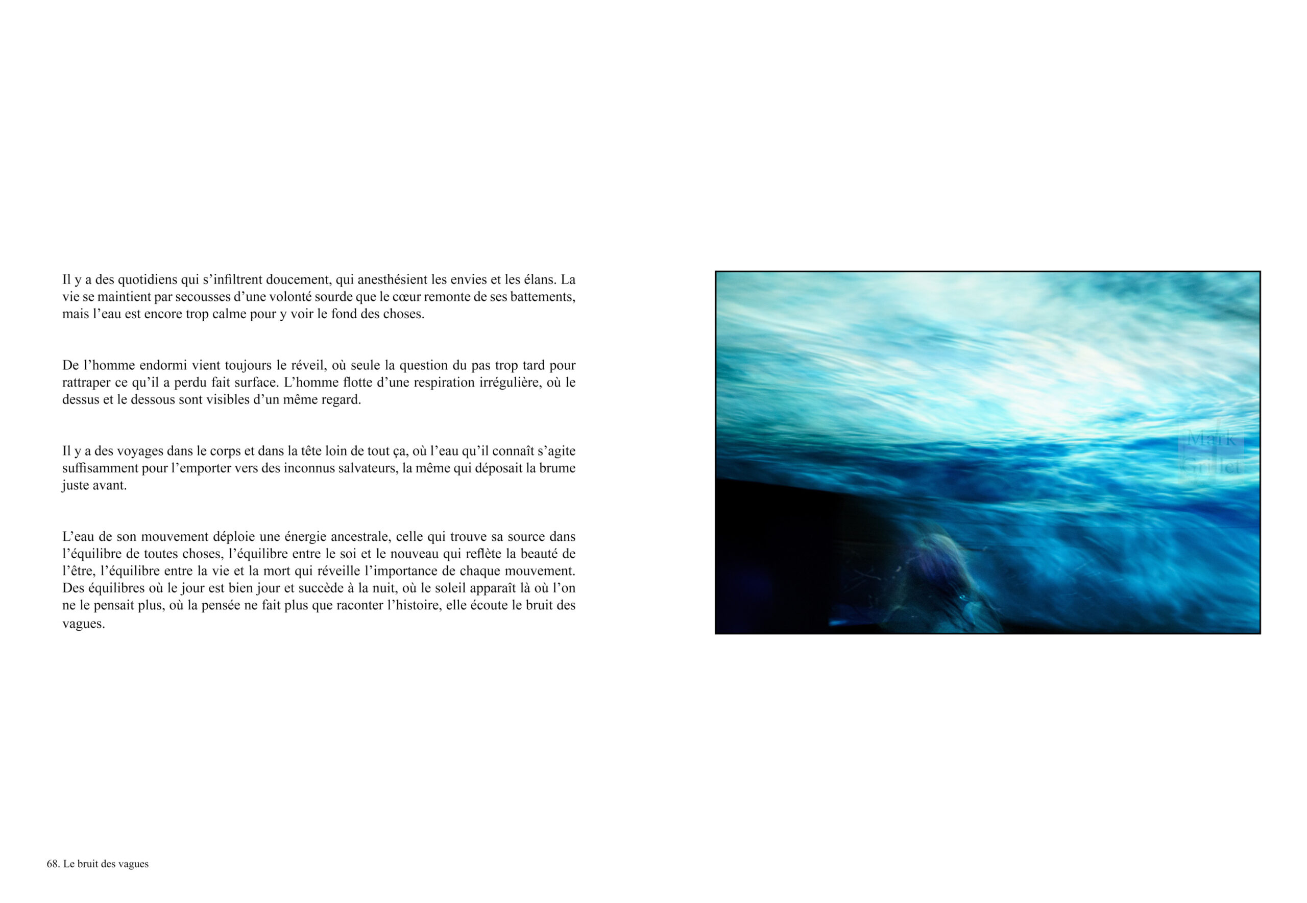 Ce livre est une réponse à la question qu’on m’a offerte un après-midi. Il parle des cycles de la vie et de toutes les morts que cela engendre. Il a pour sujet le mouvement par le biais de la mer. Il est comme un sable façonné par la vie, souffrant parfois de son immobilisme et gorgé de tout ce qui s’est échoué en lui.